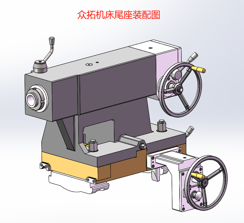 本機床尾座為手動結(jié)構(gòu),具有足夠的承載能力。尾座的移動由拖板拖掛拖動尾座縱向移動,尾座移動方便快捷,宜人性強。尾座由上、下體兩大部分組成,尾座上體內(nèi)裝有尾座套筒、尾座套筒移動機構(gòu)和主軸中心調(diào)整機構(gòu)。套筒鎖緊為手動。